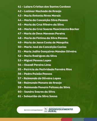 A ação reforça o compromisso da gestão municipal com o fortalecimento da agricultura familiar, assegurando apoio e segurança aos agricultores do município, especialmente diante das adversidades climáticas que possam comprometer a produção rural.